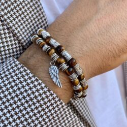 BRACCIALE UOMO OCCHIO DI TIGRE E CERCHETTI ARGENTO CHARM NIKE