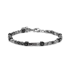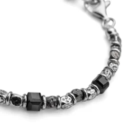Bracciale uomo Urban Soul pepite in argento martellato e cubi neri
