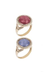 Orecchini Pirouette Quadrati Acquamarina e Rubino