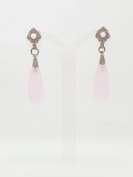 Orecchini argento rosato 925 con agata bianca, pasta di turchese e zirconi
