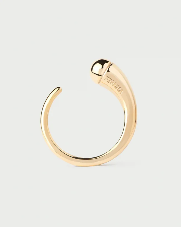 Anello a fascia aperta scultoreo con motivo a goccia e bordi arrotondati