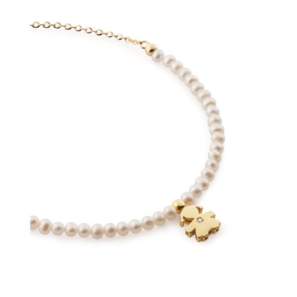Bracciale sagoma bimba in oro giallo 9kt con perle da 2,5-3 mm e diamante da 0,005 ct