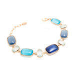 Le quattro pietre sono quarzi ecologici di grandezza e taglio uguale, ma in quattro differenti sfumature di blu.