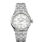 Cassa e bracciale in acciaio. Fondello con oblò trasparente e movimento a vista. Vetro zaffiro. WR 5 bar.