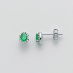 Orecchini cerchio oro bianco 18kt con incastonati smeraldi e diamanti naturali , chiusura a scatto .