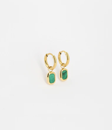 Orecchini in acciaio dorato con oro fino su cui è attaccata una pietra naturale