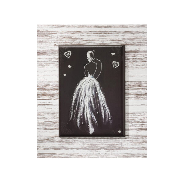 Quadro rifinito a mano dalle maestre della nostra Bottega D’Arte con Argento, cristalli Swarovski e perle di fiume.